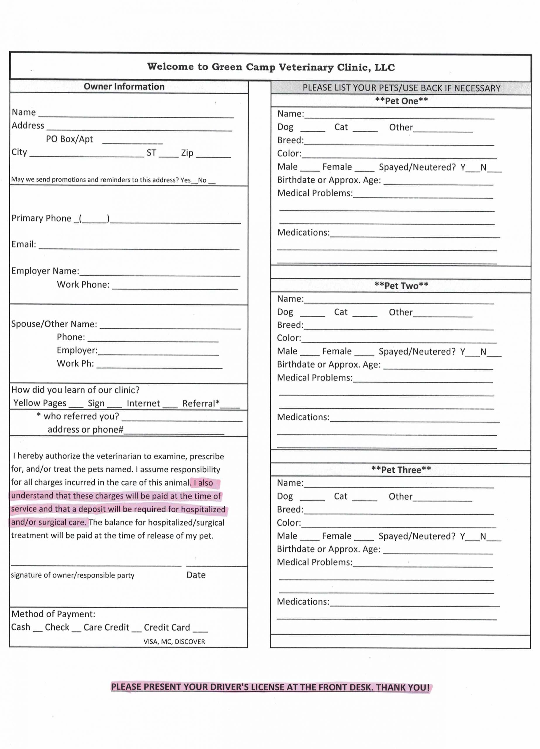 At Green Camp Veterinary Clinic, you can expect state of the art medical care for your four-legged companions. We believe in nurturing the human-animal bond and creating a harmonious relationship between people and animals. You can expect to be greeted by a courteous receptionist, clean exam rooms, friendly doctors, and caring technicians. We appreciate the role we get to play in your pet’s health care.